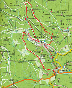 Kartographie entnommen aus dem KVplan "Der ganze Harz" (Auto- und Wanderkarte, Kommunalverlag Essen)