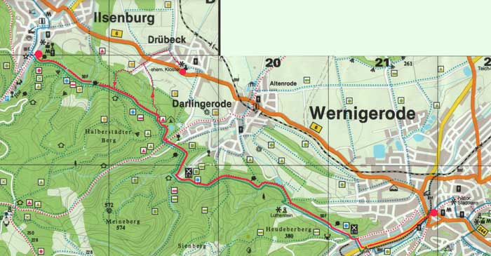 angenehmer und bequem zu laufender Wanderweg, interessante Natur-Informationen auf der Wegstrecke, romanische Klosteranlage in Ilsenburg mit neogotischem Schloßkomplex, das Kloster Drübeck am Weg nach Ilsenburg kann besichtigt werden